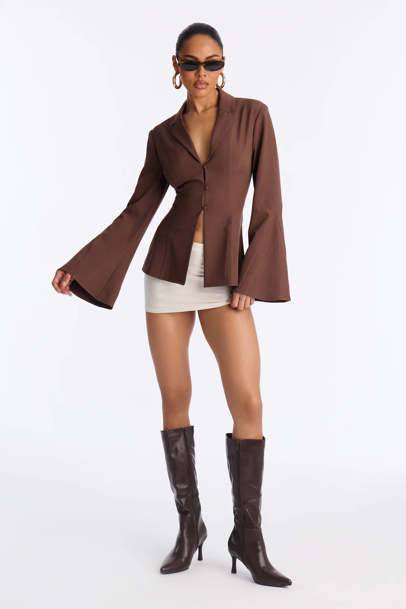 BLUSA TIPO BLAZER CON MANGAS ESTILO FLARE